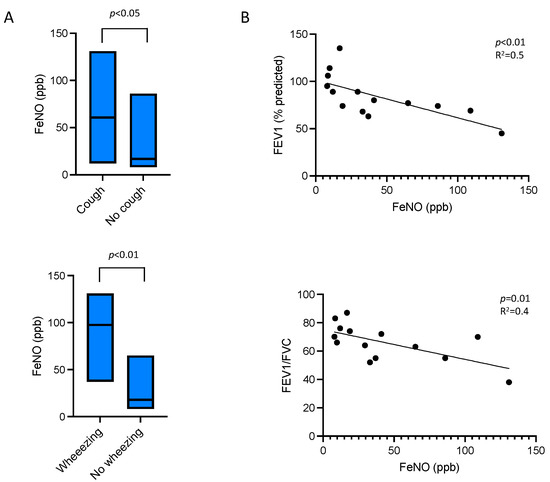 - In patients with persistent eosinophilia from disorders other than asthma, elevated FeNO levels were associated with airflow obstruction and respiratory symptoms such as cough and wheezing.