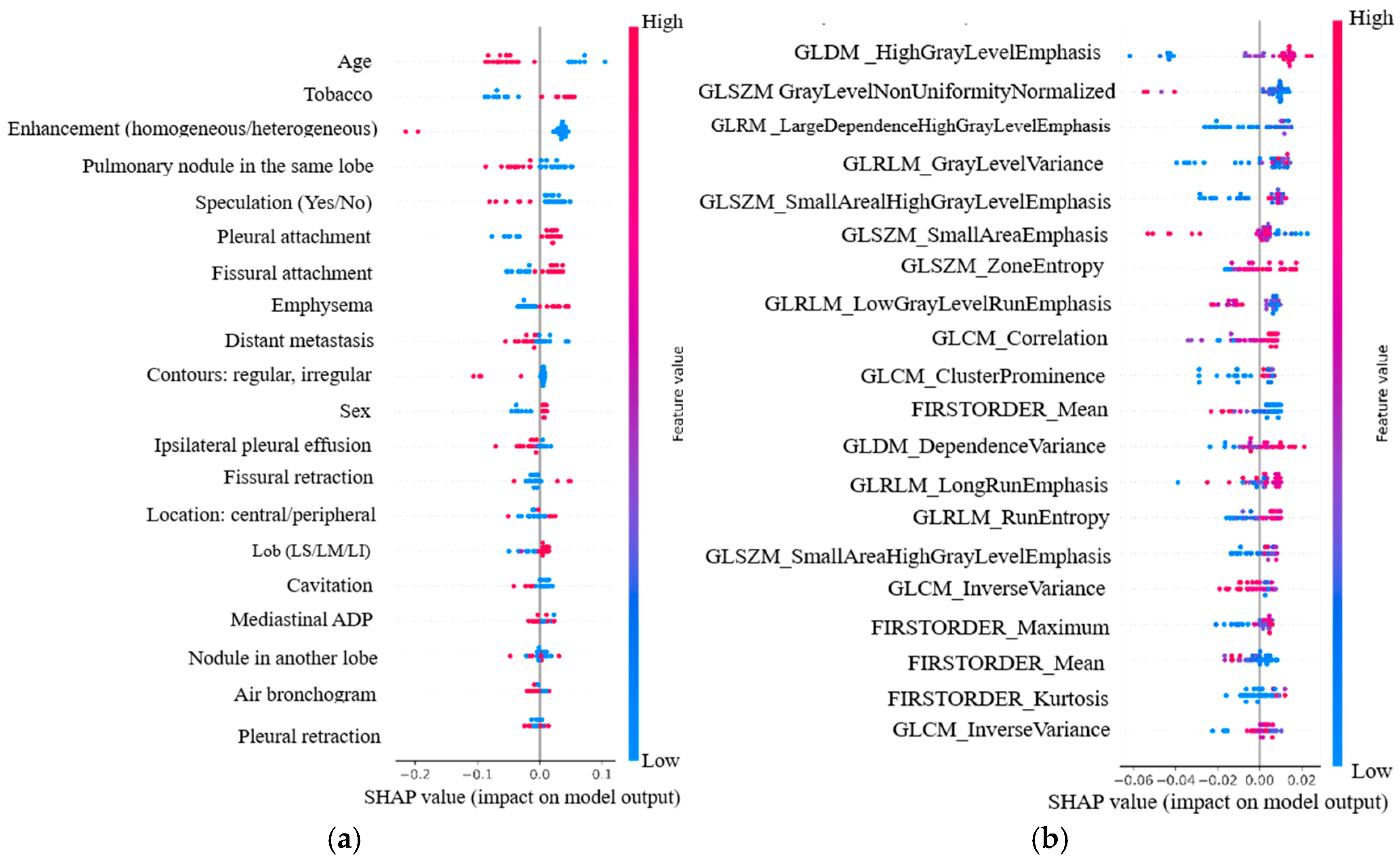 Studies that combine radiomic features with conventional clinical and imaging variables—such as patient age, smoking history, sex, enhancement characteristics, and pleural retraction—have demonstrated superior prediction performance compared to models based on a single modality [