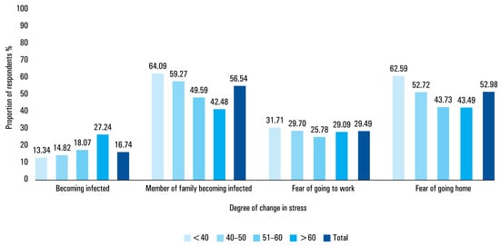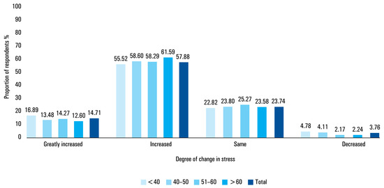 Impact of COVID-19 on stress level, by age (Survey question 22).
