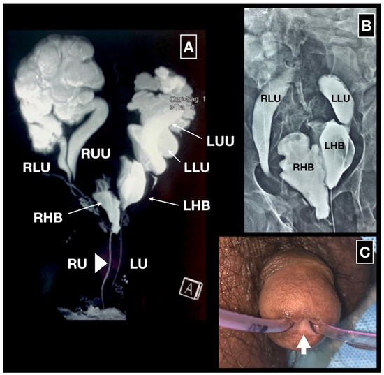 - Effmann, E.L.; Lebowitz, R.L.; Colodny, A.H. Duplication of the urethra. Radiology 1976, 119, 179–185. [Google Scholar] [CrossRef] [PubMed]