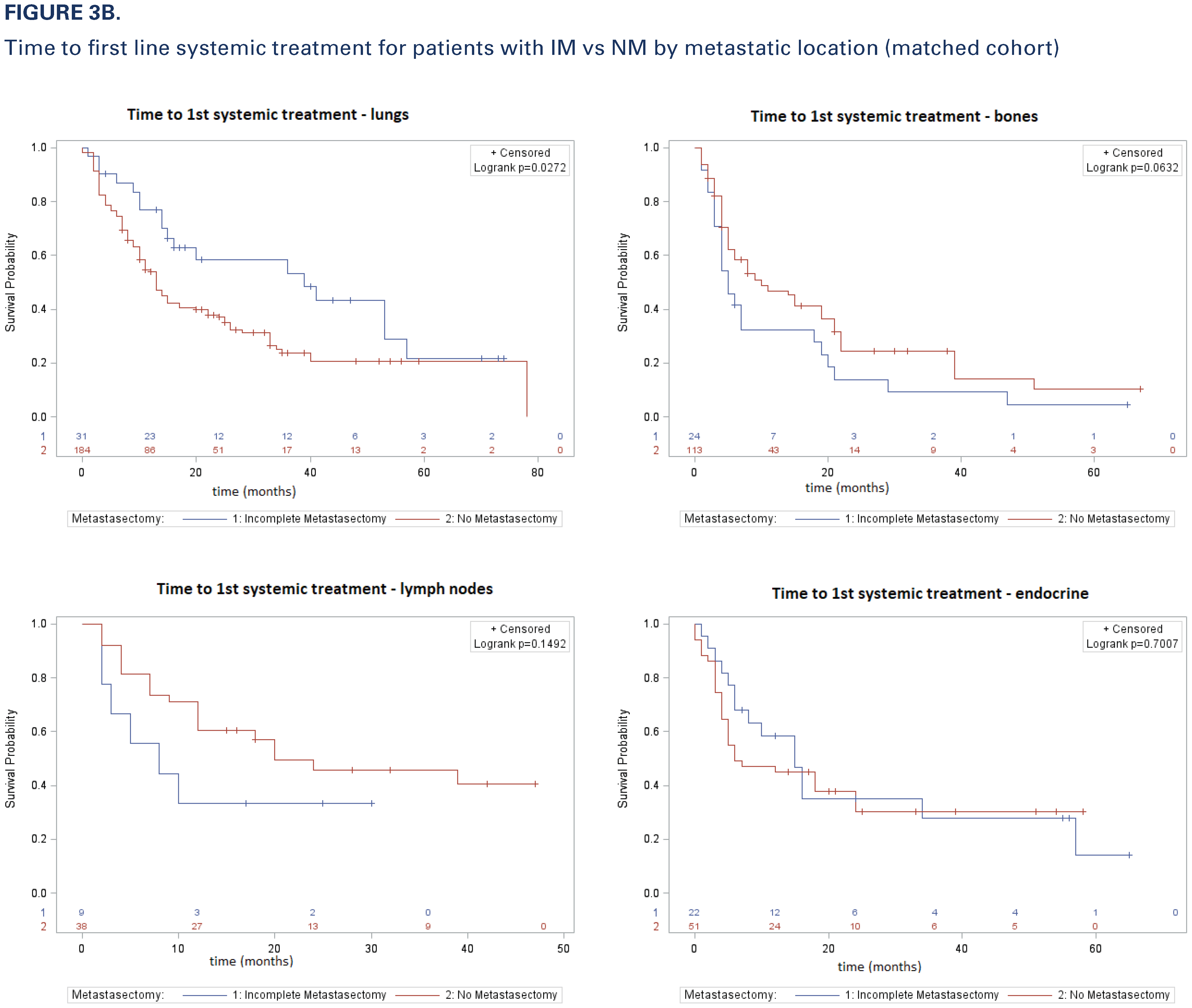 P = 0.003) The IM of lung lesions had the higher delay to first-line systemic therapy initiation when compared to bone, lymph node, and endocrine metastasectomy (