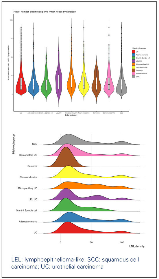 In this study, we explored the patterns of care associated with the diagnosis of a non-pure urothelial carcinoma of the bladder in the SEER database. We focused our attention on the LNI distribution according to the histological diagnosis in PLND patients, eventually exploring potential predictors of lymph node metastasis.
