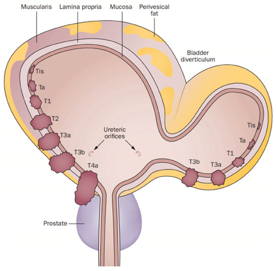 - Neuzillet, Y.; Comperat, E.; Rouprêt, M.; Larre, S.; Roy, C.; Quintens, H.; et al. Intradiverticular bladder tumours: Review of the Cancer Committee of the French Association of Urology. Prog Urol. 2012, 22, 495–502. [Google Scholar] [CrossRef] [PubMed]
