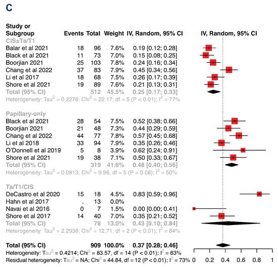 Rose, K.M.; Garcia-Perdomo, H.A.; Bivalacqua, T.J.; Witjes, J.A.; Palou, J.; Black, P.C.; Steinberg, G.D.; Lerner, S.P.; Porten, S.P.; Kamat, A.M.; et al. Systematic Review and Meta-Analysis of Response Rates in BCG-unresponsive Non–Muscle-Invasive Bladder Cancer: A Consensus Statement From the International Bladder Cancer Group. Soc. Int. Urol. J. 2022, 3, 333-339. https://doi.org/10.48083/CKYL2827