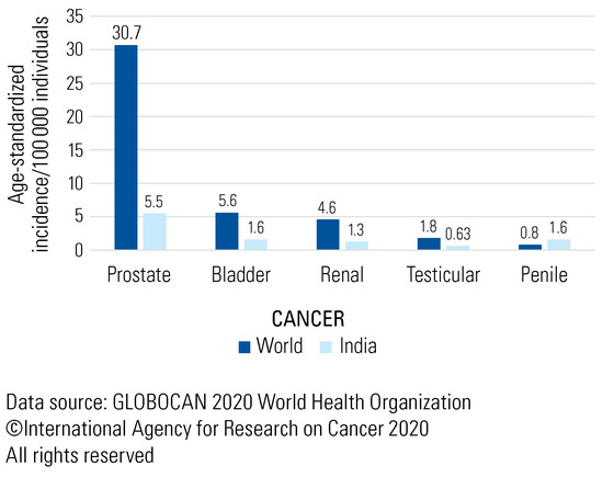 ASR of urological cancers in India versus the world.