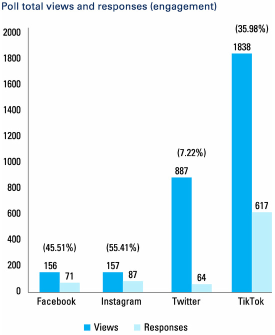 A total of 3038 views and 839 responses were collected from Facebook, Twitter, Instagram, and TikTok in the 24-hour period during which the poll was open for viewing and response on each platform.