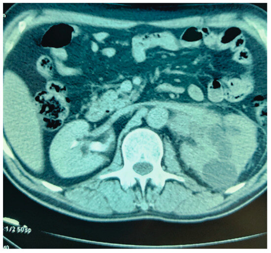 - Iwashita, Y.; Negi, S.; Iwashita, Y.; Higashiura, M.; Shigi, Y.; Yamanaka, S.; Ohya, M.; Mima, T.; Shigematsu, T. Severe refractory infection due to renocolic fistula in a patient with a giant kidney and ADPKD undergoing long-term hemodialysis. CEN Case Rep. 2018, 7, 174–177. [Google Scholar] [CrossRef] [PubMed]