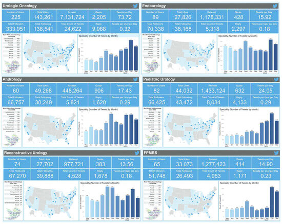 - Manning, E.; Calaway, A.; Dubin, J.M.; Loeb, S.; Sindhani, M.; Kutikov, A.; et al. Growth of the Twitter presence of academic urology training programs and its catalysis by the COVID-19 pandemic. Eur Urol 2021, 80, 261–263. [Google Scholar] [CrossRef] [PubMed]