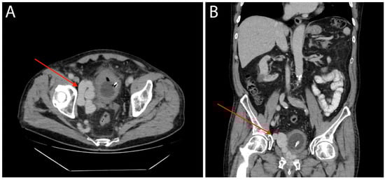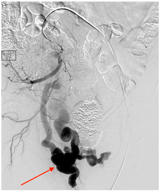 - Nguyen, L.D.; Tran, H.M.; Le, H.A.; Nguyen, T.T.; Bui, K.T.; Hoang, L.M.; Nguyen, T.S.; Nguyen, H.H. Pelvic arteriovenous malformation mimicking benign prostatic hyperplasia: A case report. Urol. Case Rep. 2023, 50, 102519. [Google Scholar] [CrossRef] [PubMed]