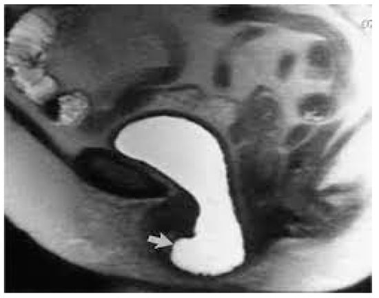 MRI—T2 weighted image of high-grade anterior compartment prolapse.