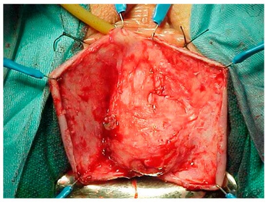 Pelvic organ prolapse (POP) is defined as the descent of one or more of the anterior and posterior vaginal walls, the uterus (cervix), or the apex of the vagina outside their usual anatomical location [1]. POP occurs in about 40% of females worldwide [2]. A cystocele is a specific type of POP known as an anterior vaginal wall prolapse [3]. This pelvic floor defect occurs when the supportive tissues around the bladder and vaginal wall, which serve to support the vaginal wall and hold the bladder in its normal anatomical position, weaken and stretch, allowing the bladder and vaginal wall to fall into the vaginal canal as shown in Figure 1, Figure 2, Figure 3 and Figure 4, which illustrate images and the dissection of a high-grade cystocele after retropubic sling placement. Often, this pelvic floor defect of the anterior compartment involves inadequate urethral closure. This impairment in urethral closure and associated anatomical changes in urethral function may lead to stress urinary incontinence [4]. Concomitant pelvic organ prolapse, and stress urinary incontinence represent a significant diagnostic, clinical, and surgical dilemma for pelvic-floor surgeons.