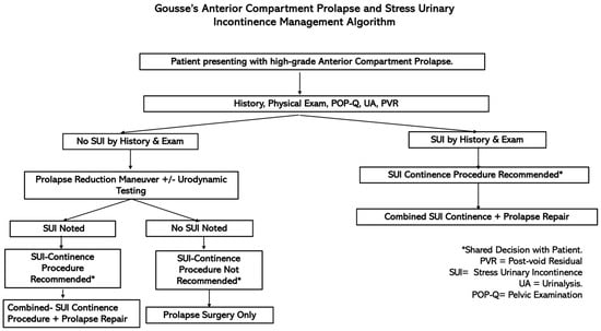 Decision-making flowchart for women undergoing prolapse surgery with or without SUI.