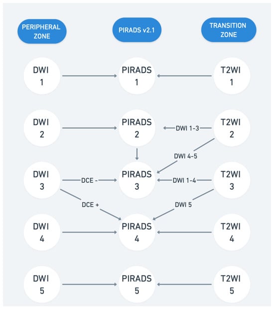 Prostate Imaging Reporting and Data System (PI-RADS) v2.1. T2WI represents T2-weighted imaging and DWI represents diffusion-weighted imaging. DCE represents dynamic contrast-enhanced imaging.