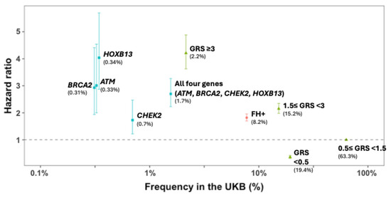 - Darst, B.F.; Sheng, X.; Eeles, R.A.; Kote-Jarai, Z.; Conti, D.V.; Haiman, C.A. Combined Effect of a Polygenic Risk Score and Rare Genetic Variants on Prostate Cancer Risk. Eur. Urol. 2021, 80, 134–138. [Google Scholar] [CrossRef]