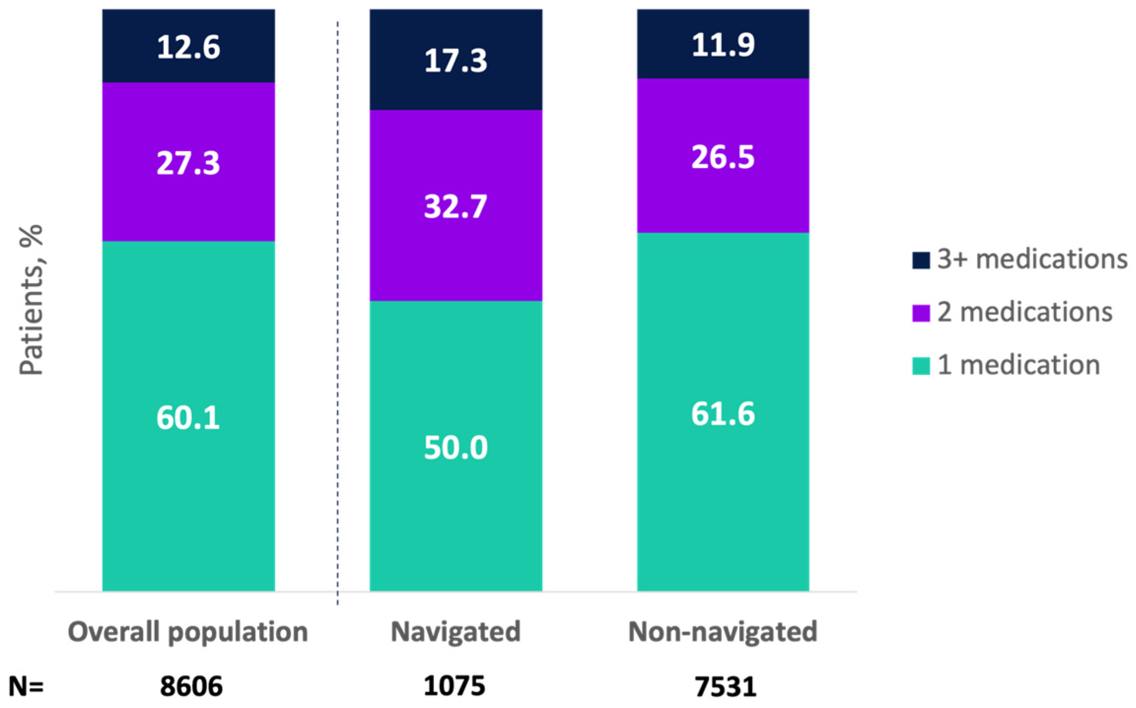 | Patients receiving pharmacologic treatment, n | 8427 | 1070 | 7357 |