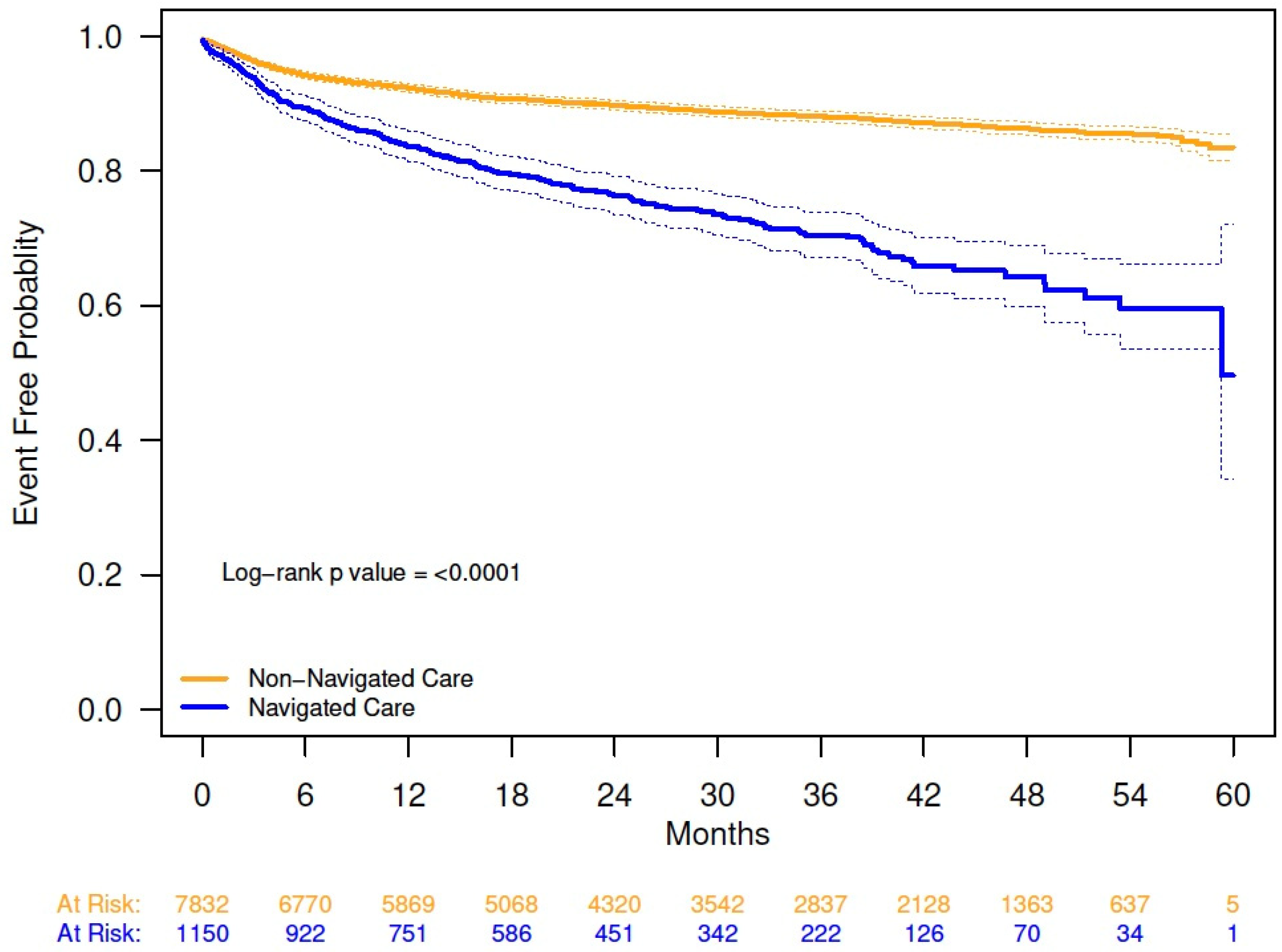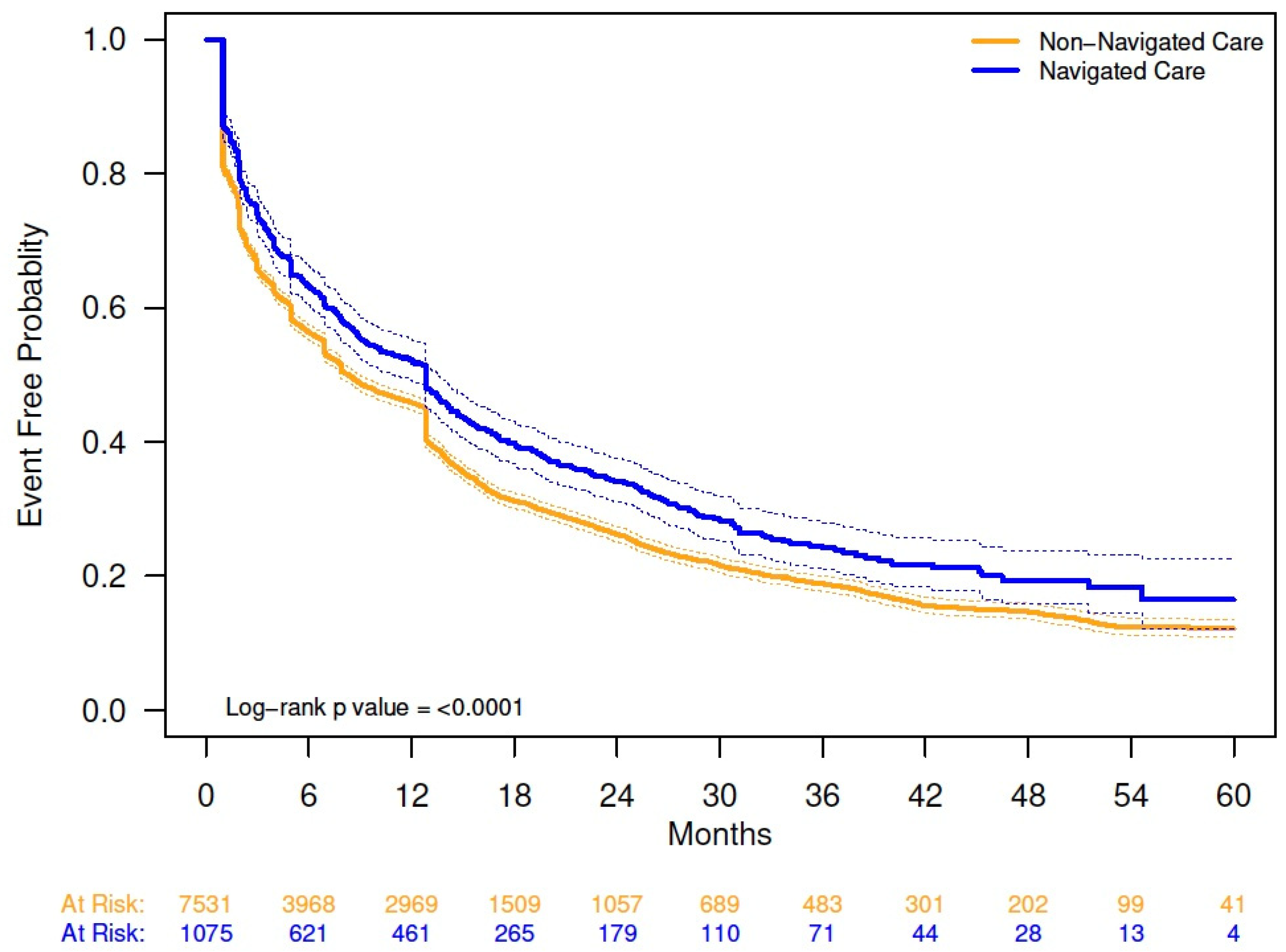 | Navigated care, vs. non-navigated care | 2.45 (2.04, 2.94) | <0.0001 |