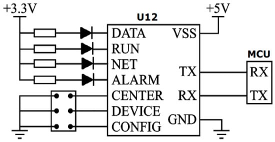 In order to realize the communication between the host controller and the host computer, the SZ05 wireless communication module was adopted based on the ZigBee protocol, which has the advantages of far communication distance, strong anti-interference ability, flexible networking, and reliable and stable performance. The interface circuit of the wireless communication module is shown in Figure 14. The RX and TX ports of the wireless communication module are connected with a TMS320F2812 serial connection; TX is the interface of sending data, and RX is a data receiving interface. The main control chip and the wireless communication module have RX and TX interface to realize the interaction of information.