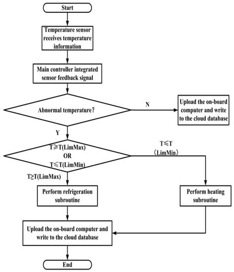 According to the above analysis, the corresponding thermal control system was designed and the schematic of the control procedure is shown in Figure 11. The battery thermal management system includes two parts: the battery pack and the control unit. The combination temperature control system of thermoelectric and liquid cooling is adopted. The specific implementation process is listed as follows: