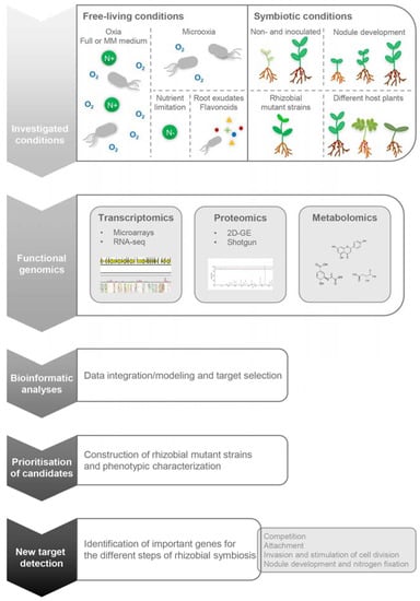 Lardi, M.; Pessi, G. Functional Genomics Approaches to Studying Symbioses between Legumes and Nitrogen-Fixing Rhizobia. High-Throughput 2018, 7, 15. https://doi.org/10.3390/ht7020015