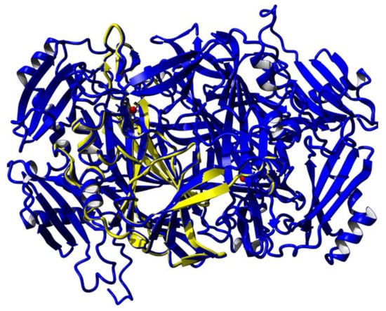 In microorganisms, diamine oxidases (DAOs) generally have a nutritional role as the sole source of nitrogen or carbon. They have been proposed to provide a signal in wound healing in plants []. In mammals, they play an important role in regulating the intracellular level of amines through neurotransmitter detoxification and cell development []. We concluded that the interest in DAO is increasing in several fields due to its involvement in numerous physiological and metabolic pathways that are related to the biological function. The versatility of DAOs is why they were chosen as the target proteins. This knowledge is useful in understanding protein structure and function. It is hoped that this research may significantly contribute to the development of new biocatalysts in the future. Diamine oxidase was first reported in 1929 and seemed to be responsible for physiological conditions when the enzyme activity was low, especially, when there is a critical decrease of the enzyme in the metabolism of histamine []. Scientists are captivated by its unique characteristics in the body and brain under various conditions, especially in the evolution of a new drug []. Its core function is to degrade the histamine formed in tissues. DAO is a homodimer protein that consists of 60 to 105 kDa subunits []. As a large protein, DAO is more susceptible to destabilising agents such as heat and pH, similar to other large proteins []. Thus, for this study, we miniaturised the native DAO through computational modelling and protein synthesis while retaining its catalytic function. It is hoped that this research may shed light on the development of new biocatalysts in the future.