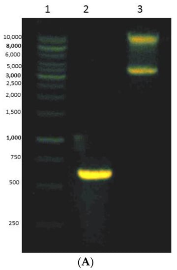 (A) Gel electrophoresis of recombinant plasmid verifies the positive transformant. The recombinant was electrophoresed on 1% (w/v) agarose gel. Lane 1: Marker GeneRule 1kb DNA; Lane 2: gene of interest; Lane 3: extraction plasmid. (B) Sequence alignment of mini DAO sequence after sequencing and designed targeted mini DAO generated in silico in Biology Workbench 2.0 (http://workbench.sdsc.edu/).