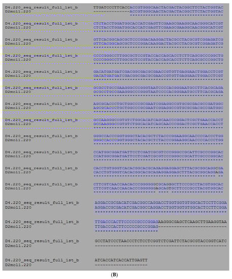 - Altschul, S.F.; Gish, W.; Miller, W.; Myers, E.W.; Lipman, D.J. Basic local alignment search tool. J. Mol. Biol. 1990, 215, 403–410. [Google Scholar] [CrossRef]