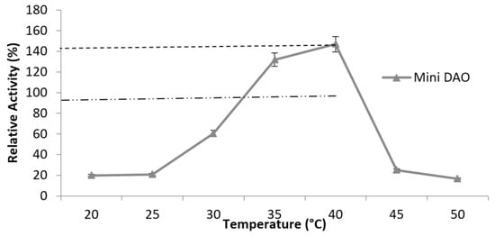 The effect of temperature on mini DAO stability. The enzyme was pre-incubated at 35 °C, 40 °C, 45 °C and 50 °C.