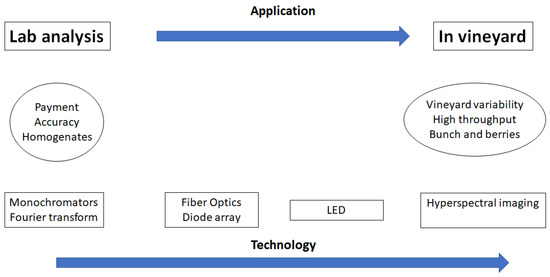 Developments in handheld and portable instrumentation, fibre optics and hyperspectral imaging prompted the rapid evolution of the application of these technologies for the analysis of grape composition. Concomitantly, increasing computer power, easy to use software, algorithms, internet of things and data bases boosted the incorporation of these techniques into the food/wine industry.