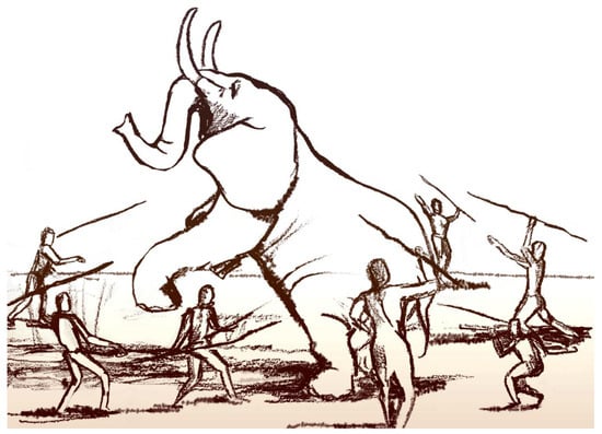 The use of spears (Figure 1) is strongly associated with the hunting of large animals [27,130]; and indeed, the use of spears in elephant hunting appears in several ethnographic documentations.