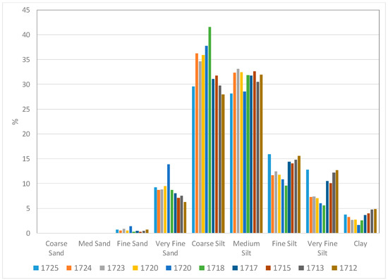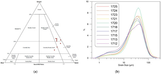 - Blott, S.J.; Pye, K. GRADISTAT: A grain size distribution and statistics package for the analysis of unconsolidated sediments. Earth Surf. Process. Landf. 2001, 26, 1237–1248. [Google Scholar] [CrossRef]