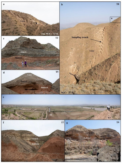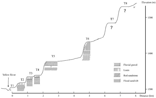 - Gao, H.; Li, Z.; Liu, F.; Wu, Y.; Li, P.; Zhao, X.; Li, F.; Guo, J.; Liu, C.; Pan, B.; et al. Terrace formation and river valley development along the lower Taohe River in central China. Geomorphology 2020, 348, 106885. [Google Scholar] [CrossRef]