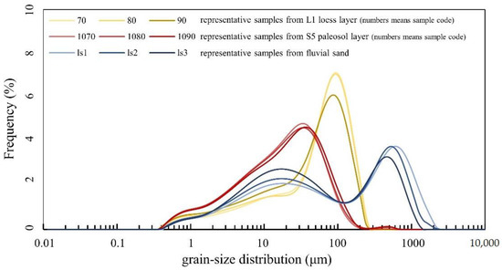 - Vandenberghe, J. Grain size of fine-grained windblown sediment: A powerful proxy for process identification. Earth-Sci. Rev. 2013, 121, 18–30. [Google Scholar] [CrossRef]