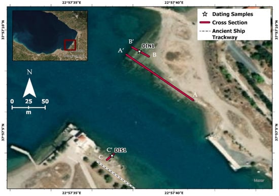 - Hadler, H.; Koster, B.; Mathes-schmidt, M. Lechaion, the Ancient Harbour of Corinth (Peloponnese, Greece) destroyed by tsunamigenic impact. In Proceedings of the 2nd INQUA-IGCP-567 International Workshop on Active Tectonics, Earthquake Geology, Archaeology and Engineeering, Corinth, Greece, 19–24 September 2011; p. 1755. [Google Scholar]