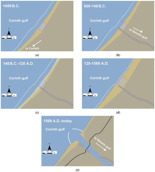 - Maroukian, H.; Gaki-Papanastassiou, K.; Papanastassiou, D. Coastal changes in Corinthia, Greece. In RES MARITIMAE: Cyprus and the Eastern Mediterranean from Prehistory to Late Antiquity; Swiny, S., Hohlfelder, R.L., WyldeSwiny, H., Eds.; Scholars Press: Atlanta, GA, USA, 1994; pp. 217–226. [Google Scholar]