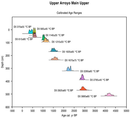 Age–depth graph with the 2-Sigma plot for the Upper Arroyo main sequence, upper part.