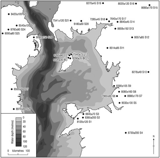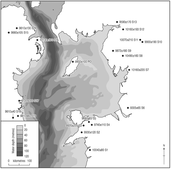 The existence and tenure of land bridges connecting Britain with the Isle of Man is an important issue that must be considered when discussing the immigration of plant species. Water depths in the northern Irish Sea are deep, particularly to the west of the Isle of Man. Even given maximum isostatic depression and relative sea-level rise, there would still have been deep water between the Isle of Man and Ireland []. To the north between the island and Scotland the sea is still relatively deep, but to the east the shelf between England (Cumbria) and the Isle of Man today does not exceed 40 metres in depth and so during periods of relatively low early Holocene relative sea level [], particularly before 9000 14C BP, the Isle of Man will have been connected to Cumbria. The existence and duration of any land bridges is an important factor controlling the palaeoecology of the island, providing a route-way for plants and animals to migrate onto the Isle of Man.