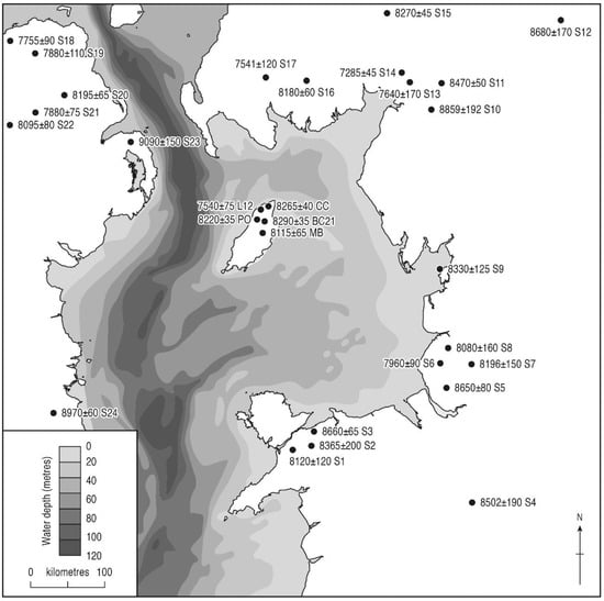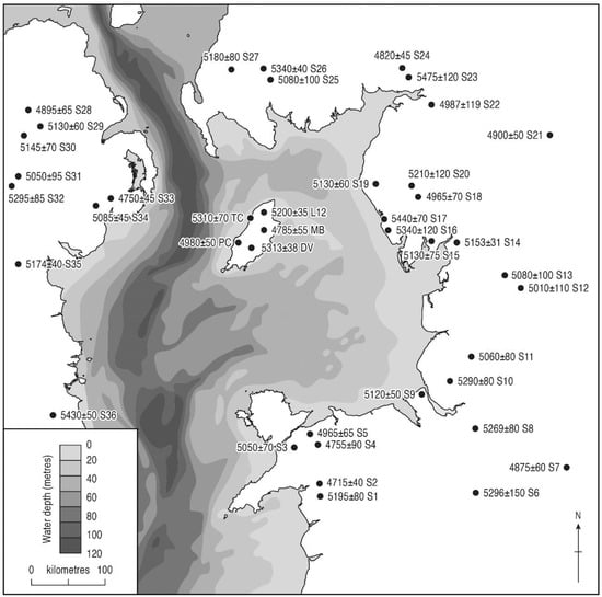 - Garrow, D.; Sturt, F. Grey waters bright with Neolithic argonauts? Maritime connections and the Mesolithic-Neolithic Transition within the ‘western seaways’ of Britain, c.5000–3500 BC. Antiquity 2011, 85, 59–72. [Google Scholar] [CrossRef]
