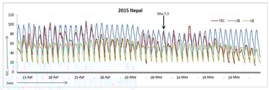 - Sharma, G.; Champati ray, P.K.; Mohanty, S.; Gautam, P.K.R.; Kannaujiya, S. Global Navigation Satellite System Detection of Preseismic Ionospheric Total Electron Content Anomalies for Strong Magnitude (Mw > 6) Himalayan Earthquakes. J. Appl. Remote Sens. 2017, 11, 046018. [Google Scholar] [CrossRef]