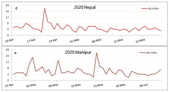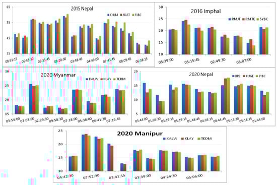 | Manipur 5.2 13 km SSW of Kakching, India 25-May-20 | KALW | 141.04 | (10, 11, 12, 14, 18, 29, 31) May 9 June | 29 April 1 May (2, 4) June |