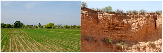 Pleistocene cryopediments characterize, for instance, large parts of the modern Belgian–Dutch lowlands and the rolling landscape of Moravia (Czech Republic) (Figure 6A [57]. In the relatively flat topography of lowlands, only low energy was required to remove the relatively small amounts of fine-grained sediment. Thus, the gradients of the cryopediment, as the driving force for sediment removal, could be relatively small, from some tenths of a degree on top of erodible soft substratum (as in NW Europe) until a maximum of a few degrees on top of hardrock substratum (as in central Europe) [57]. At their distal ends, the cryopediments grade into river terraces or directly into valley floors. In contrast with the present-day drainage by meandering channels, sediment transport was by rillwash and a dense network of shallow gullying in the NW European lowlands, supplemented with mass movement in the hilly topography of Moravia [7,18,58]. Vertical erosion may progressively have extended towards the upslope ends of the drainage network by regressive erosion [18,59]. It was shown that progressive cryopedimentation during the Pleistocene resulted in a river terrace-like staircase, although younger cryopedimentation may have re-shaped ultimately former cryopediments [58].