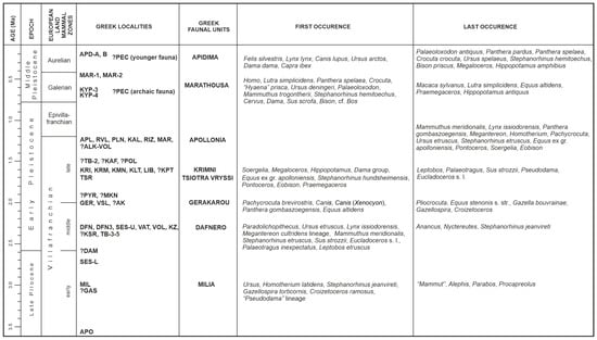 biochronology; biostratigraphy; Villafranchian; Galerian; faunal units; Pliocene; Pleistocene; Greece 1. Introduction