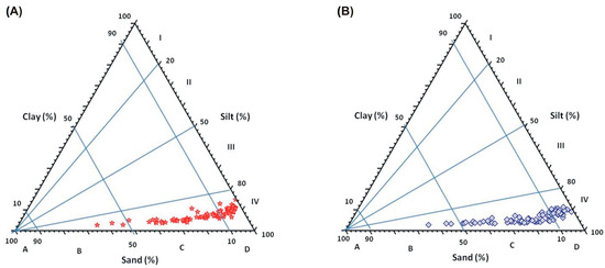 - Pejrup, M. The triangular diagram used for classification of estuarine sediments: A new approach. In Tide-Influenced Sedimentary Environments and Facies; D. Reidel Publishing Company: Dordrecht, The Netherlands, 1988; pp. 289–300. [Google Scholar]