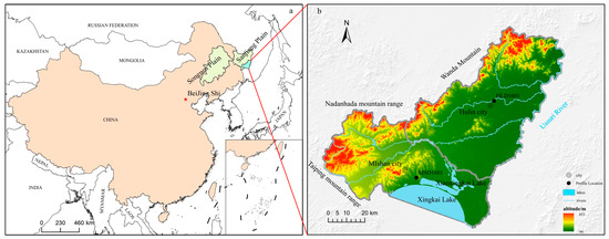 There are two typical black soil profiles in the Xingkai Lake Plain black soil area, which are MSD1601 and HLD1601 (Figure 1a,b), with geographic coordinates of 132°17′46.61″ E, 45°24′2.06″ N and 133°08′45.78″ E, 46°01′21.49″ N, respectively. The land use type of both profiles is cropland.