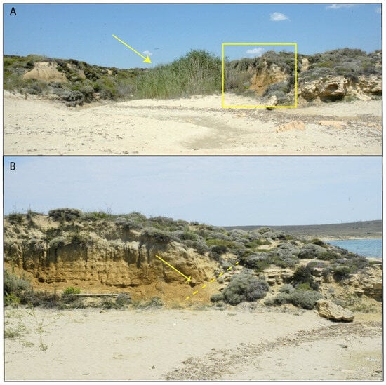 | Unit 6b | In undulating boundary to Unit 8 | Sand infiltration from Unit 7, fragments of calcarenite, and abundant calcareous infillings | Truncated paleosol/bioturbation/aeolian processes | OUR2 |