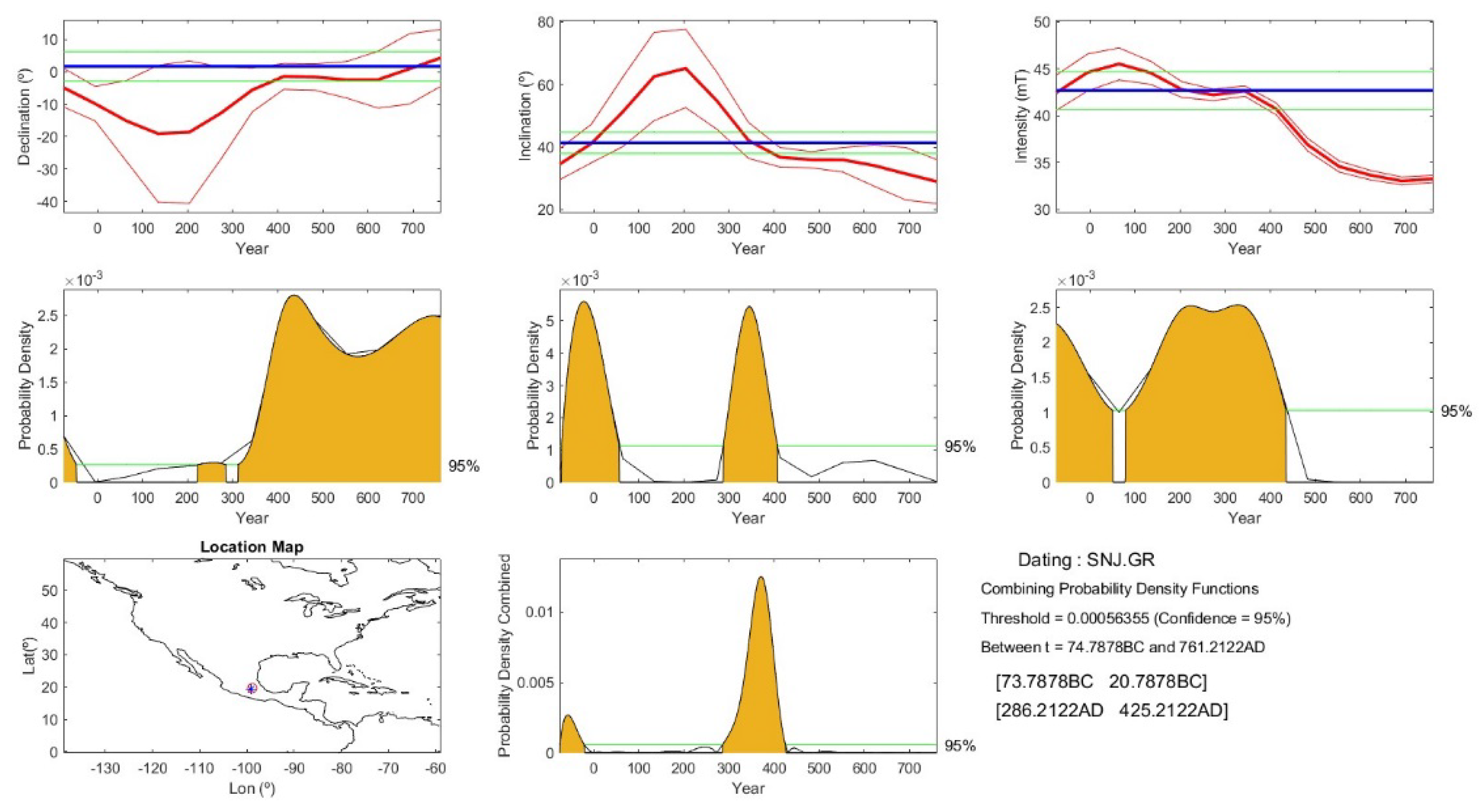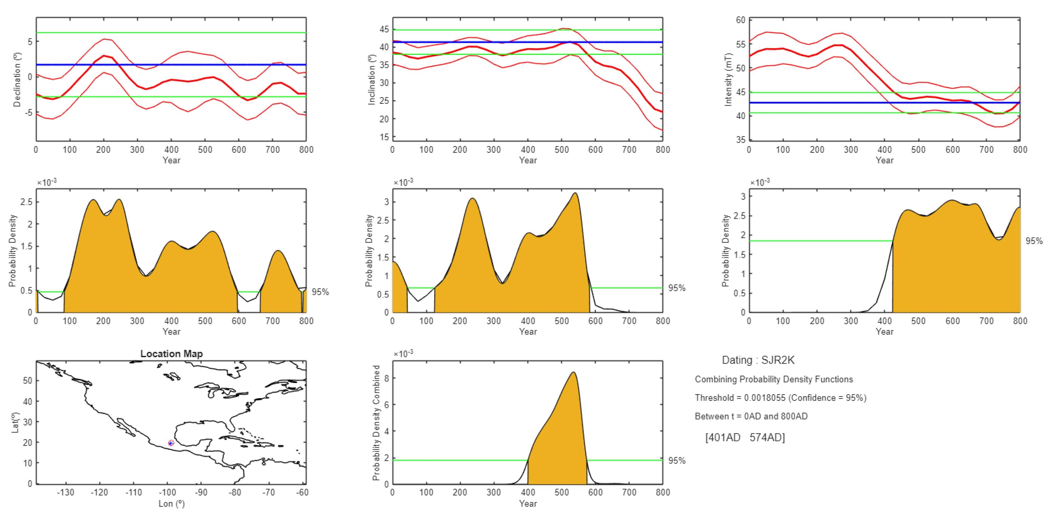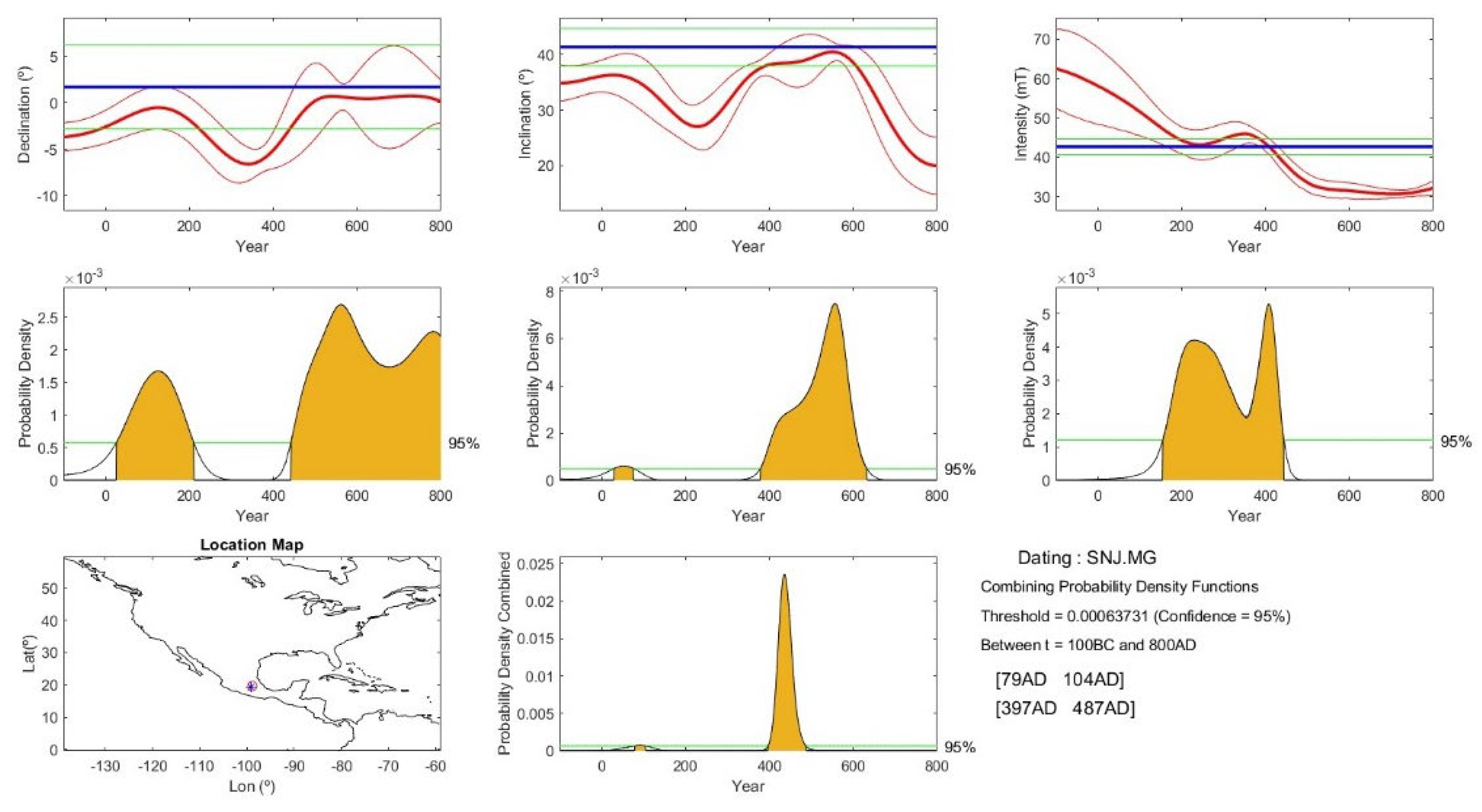 - Following a review of archaeological and environmental data, the time interval 1–800 AD was selected for archaeomagnetic dating. Both a global geomagnetic model (SHAWQ.2k) and two regional secular variation reference curves were employed.