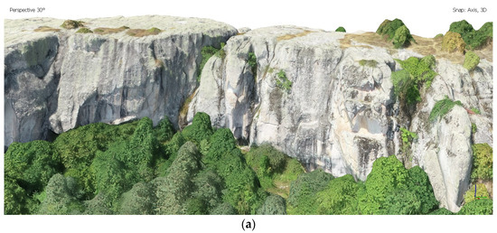 Step 7: Visualization procedure—after obtaining the digital products in the previous stages of the SfM workflow, the last step is their visualization. Commercial software packages, such as Agisoft PhotoScan and Pix4D (https://gmv.cast.uark.edu/photogrammetry/photogrammetry-software/agisoft-photoscan/ (accessed on 5 September 2020), https://www.pix4d.com/product/pix4dmapper-photogrammetry-software/ (accessed on 5 September 2020)) have built-in visualizers of 3D clouds and textured surfaces. The open source program Blender has been used for additional processing of 3D point clouds and surfaces, as well as for their visualization (https://www.blender.org/ (accessed on 5 September 2020)). In our case, the SfM image processing method was applied to model the structue of the terrain surface of the rock-cut monument “Belintash” near the village of Mostovo and the cromlech near the village of Dolni Glavanak, Madzharovo Municipality [27,28].