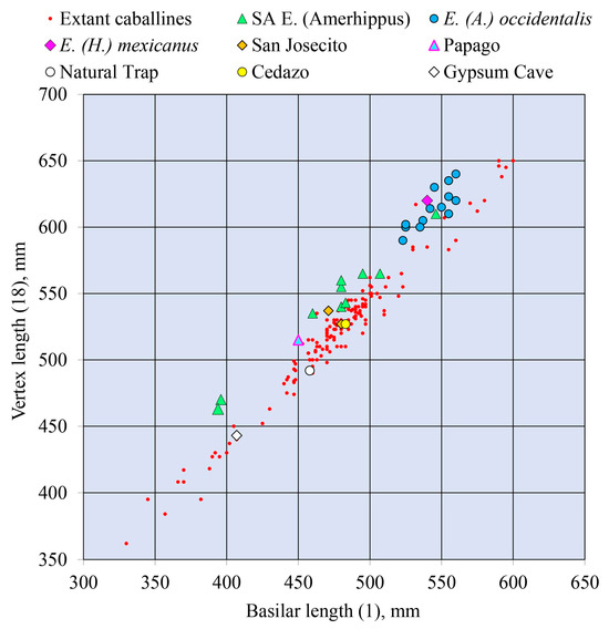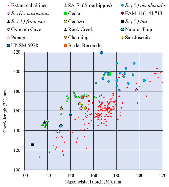 3.2.1. Cranial Proportions of Caballine and Amerhippine Equus and the Particular Case of Equus (H.) mexicanus