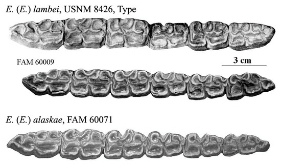 4.1.2. Equus (E.) alaskae and Equus (E.) lambei (Supplementary File S2, Supplementary Table S2)