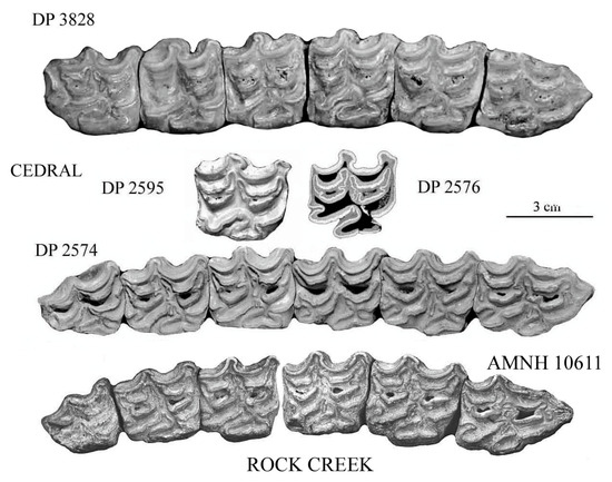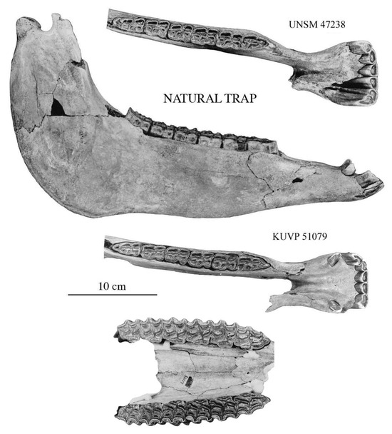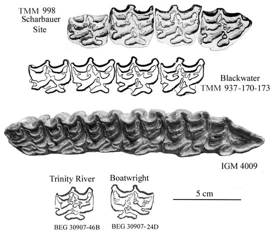 - Hay, O.P.; Cook, H.J. Preliminary descriptions of fossil mammals recently discovered in Oklahoma, Texas, and New Mexico. Proc. Colo. Mus. Nat. Hist. 1928, 8, 1–33. [Google Scholar]