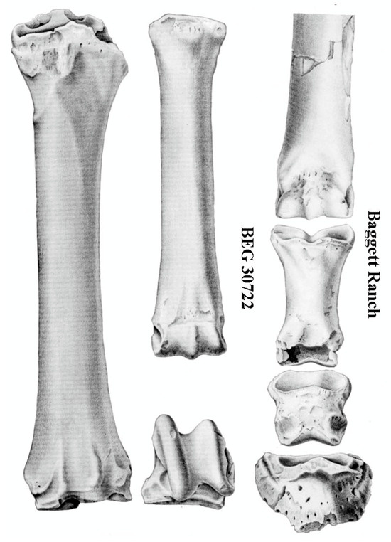 - Frick, C. Extinct Vertebrate Faunas of the Badlands of Bautista Creek and San Timoteo Canyon, Southern California; University of California Press: Berkely, CA, USA, 1921; Volume 12, pp. 277–424. [Google Scholar]